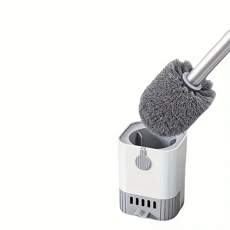 Wandmontierte Toilettenbürstengarnitur mit langem Griff.